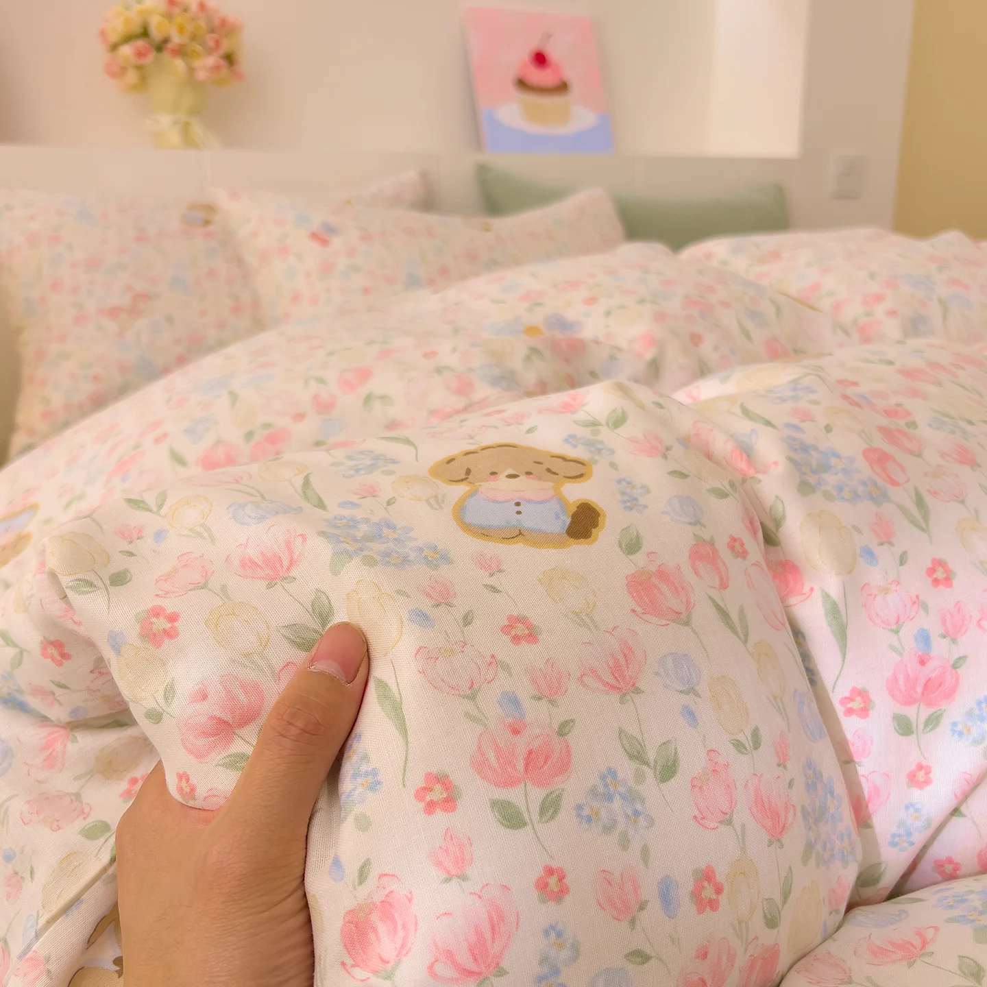 2025 Gewassen katoen, dubbel garen, eenpersoonsdekbedovertrek, eenvoudige wind, ins wind, kleine bloemen, Koreaanse versie, dekbed, huidvriendelijk beddengoed
