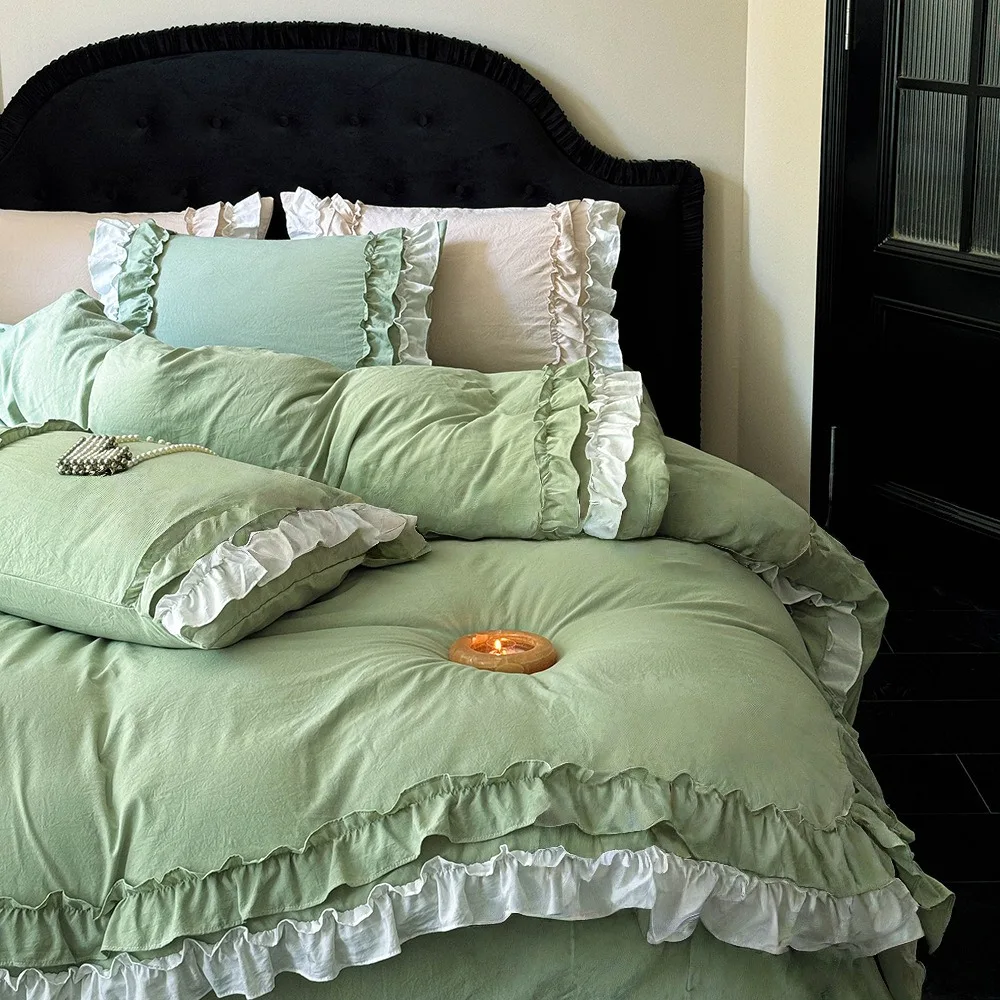 Prinses Kant Ruche 2/3 Stuks Dekbed Set Twin/Full/Queen/King/Enkele/Dubbele beddengoed Sets met Dekbedovertrek Marmeren Dekbedovertrek