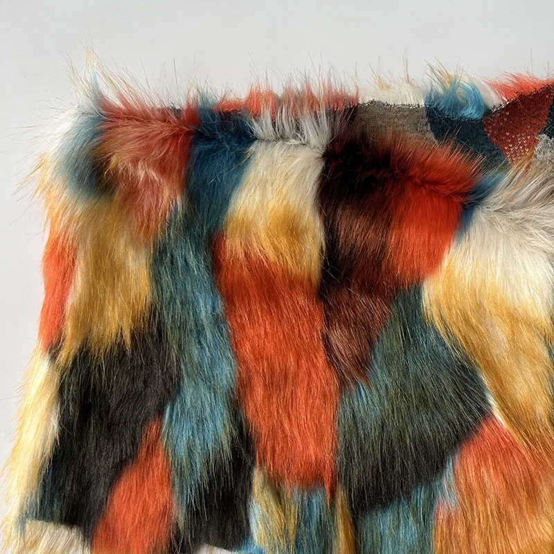 1yard regenboog kleurrijke jacquard namaakbontstof, veelkleurig patchwork pluche materiaal voor deken kussen kleding
