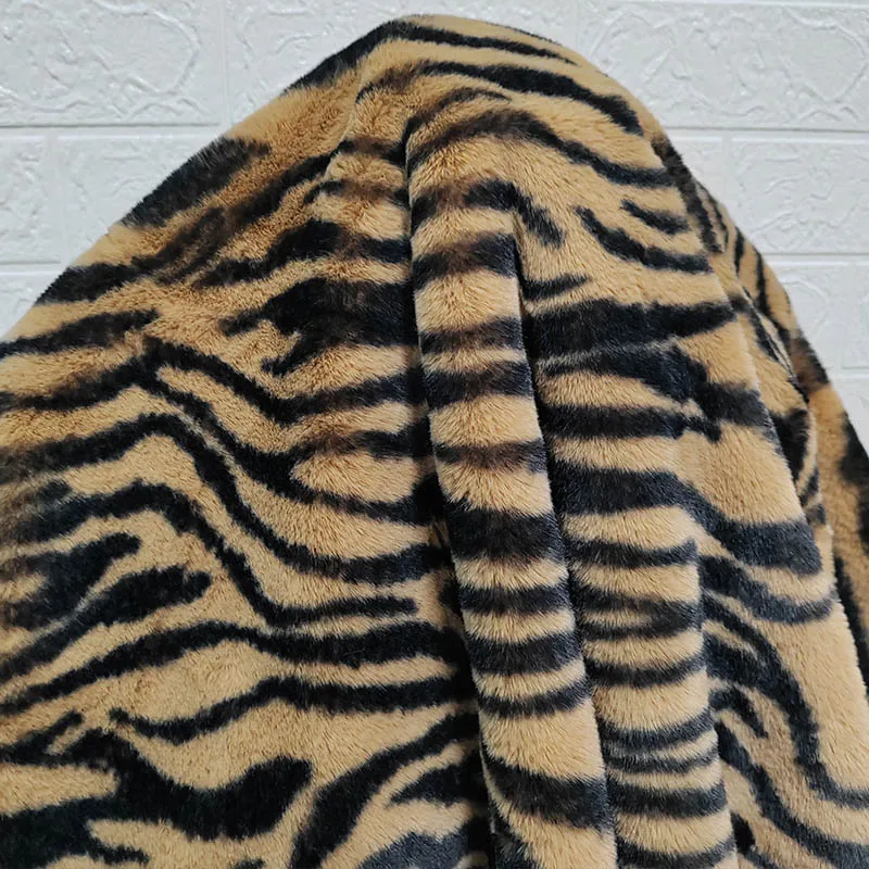 Goed, diepe kameel imiteren konijn pluche 1,2 cm harig, namaakbont stof, diy deken, jas, tijger zebra zwarte streep patroon kunstbont