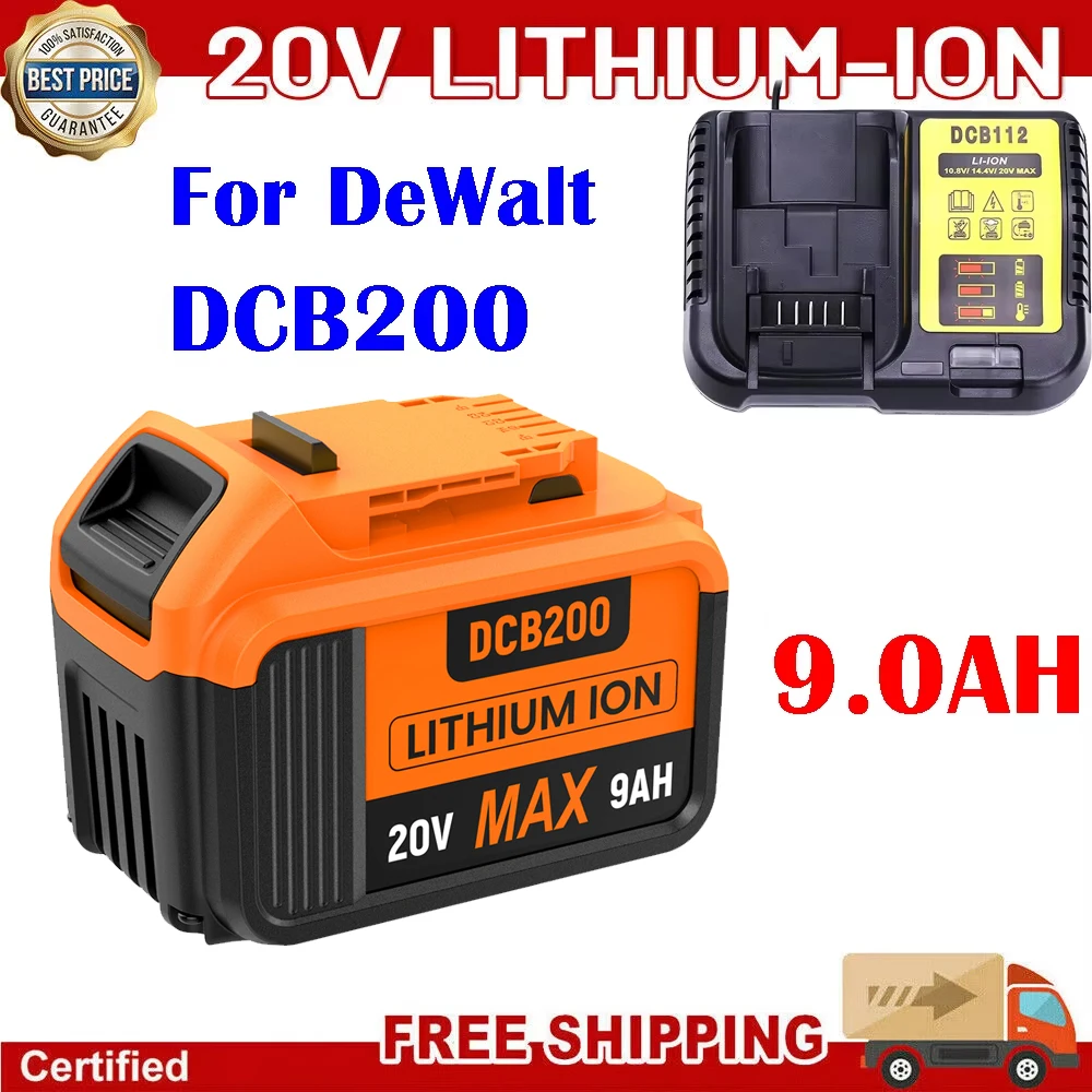 9000 MAH Voor Dewalt DCB200 Vervangende Batterij Compatibele Oplader Voor Dewalt 18 V 20 V Gereedschap DCB120 DCB182 DCB200 DCB609 Batterij
