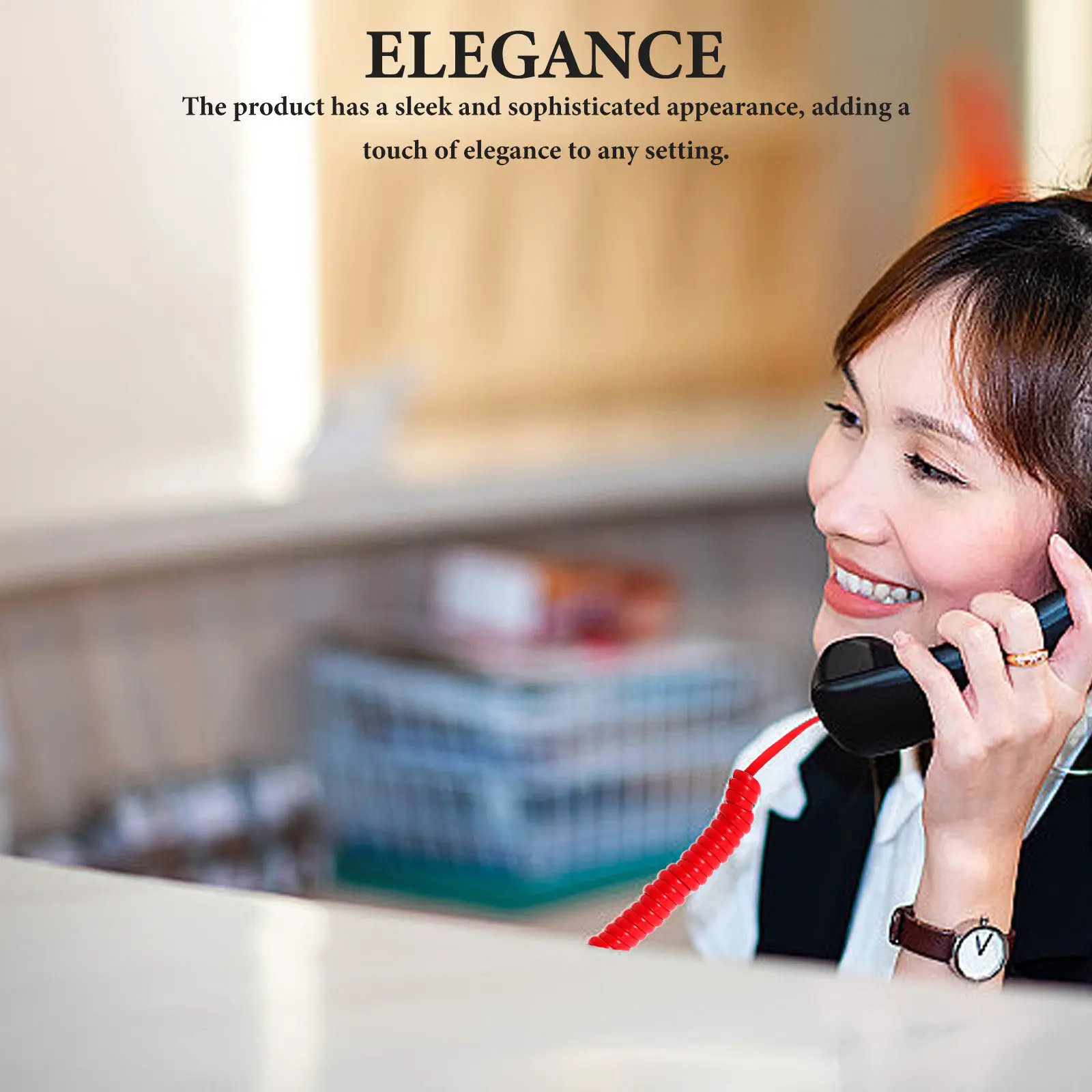 2 stuks opgerolde telefoonsnoeren voor vaste telefoons, koperen kern, rubberen mantel, veerbelast, verstelbare ontvangerkabel, stijlvol zwart