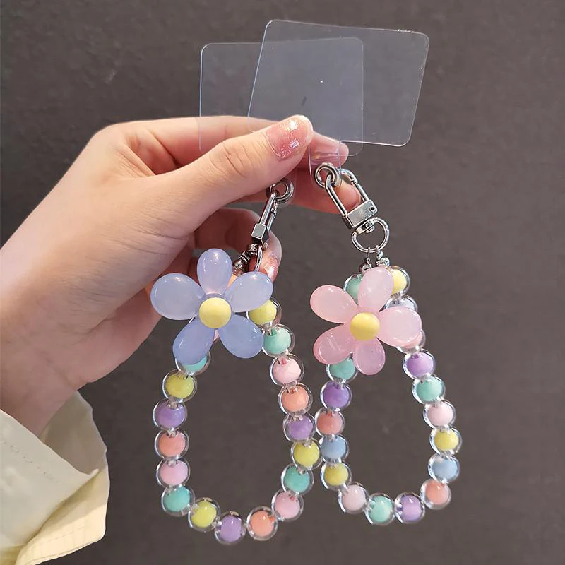Gekleurde kraal bloemblaadje Lanyard telefoon anti-verloren Lanyard sleutelhanger korte pols hanger hanger dames draagbare mobiele telefoon hanger