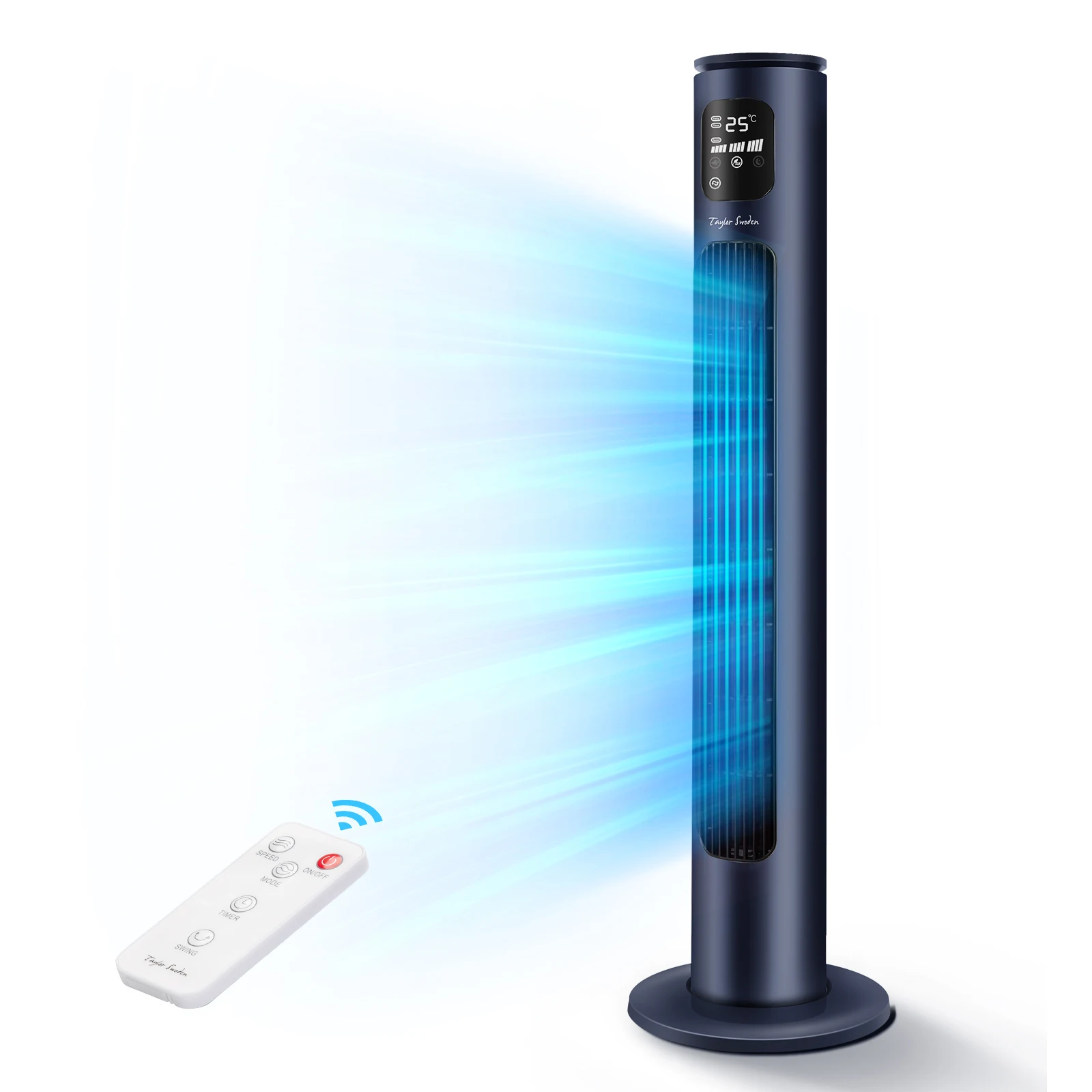 Taylor Swoden Ventilador de torre con mando, pantalla LED, 102 cm, temporizador 24 mwa, 3 velocidades, 3 modos, oscila groep