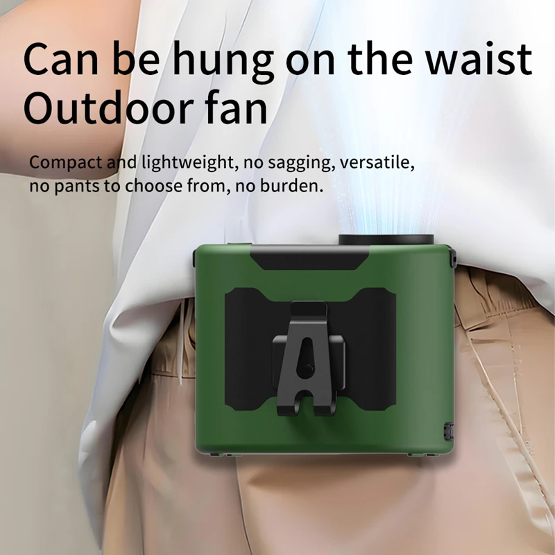Socool Draagbare Tailleventilator 14500mAh, Dubbele Luchtuitlaat, Turbomotoren, Vier Klemmen, Noodzakelijke Zaklamp voor Buiten