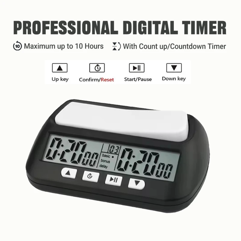 Professionele digitale schaaktimer met count-up/down-modi en alarm Draagbare toernooitramer voor internationaal schaak-/bordspel