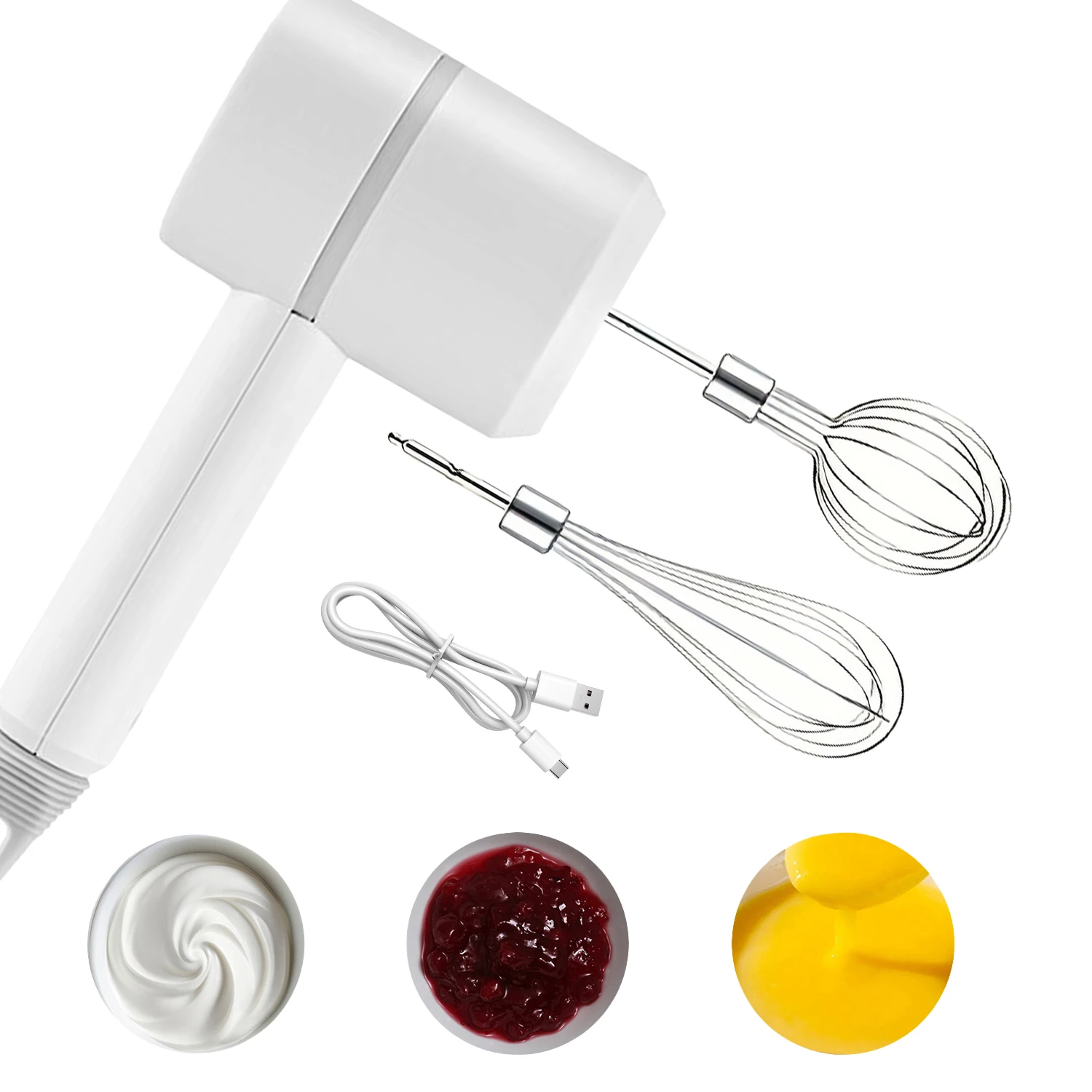 Draadloze handmixer, draagbare elektrische garde met 3 snelheidsmodi, draagbare eierklopper met 2 afneembare roergarde