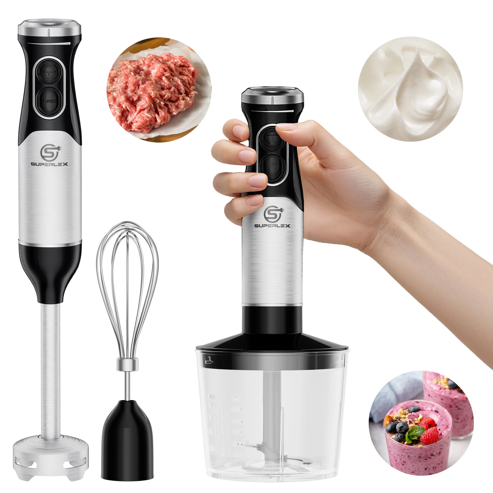 SUPERELX 3 in 1 staafmixer 600 W vermogen handstaafmixer mixer groente vleesmolen met 304 roestvrijstalen mes