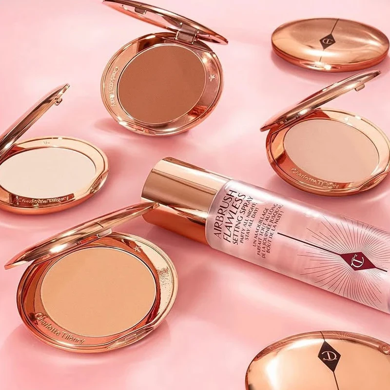 Charlotte Tilbury Set Geperste Poeder Olie Control Waterproof Vloeibare Foundation Concealer Langdurige Hydraterende Make-up Fixing Spray