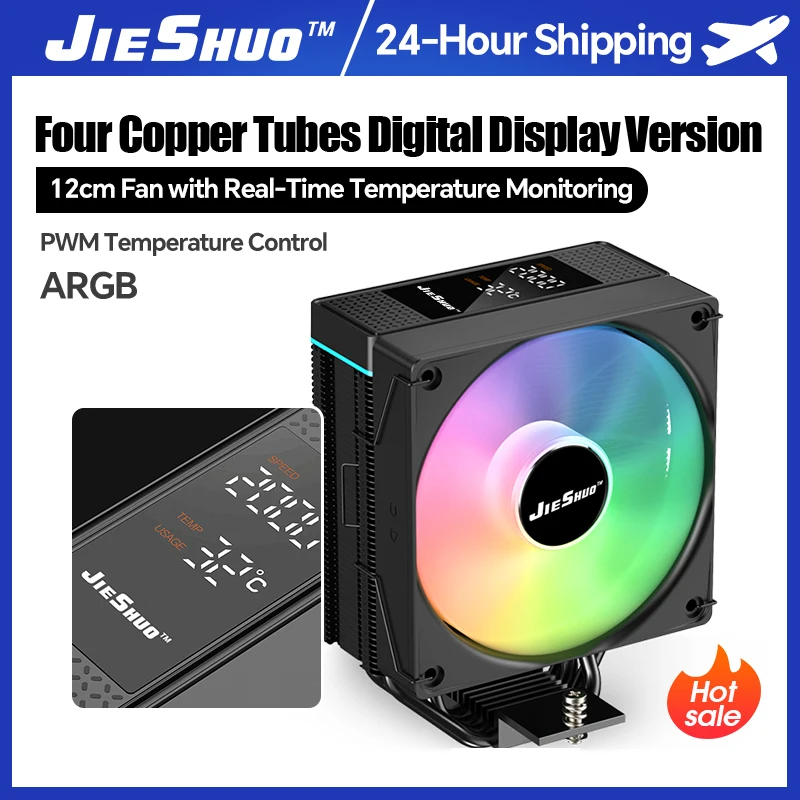 JIESHUO JS2501 CPU-koeler met realtime temperatuur- en toerentaldisplay voor Intel LGA1700/AMD PWM-besturing ARGB Sync PC-ventilator
