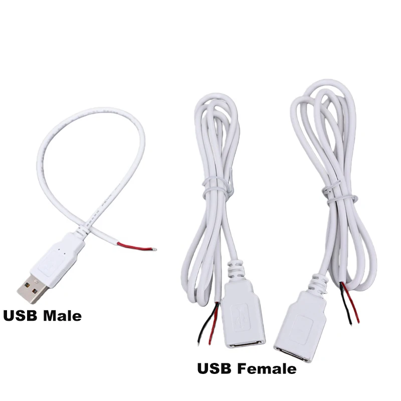 5V 2pin USB 2.0 Vrouwelijke Mannelijke Voeding Kabel Draad Jack Opladen Uitbreiding Connector wit 0.3m 1m voor computer accessoires J17