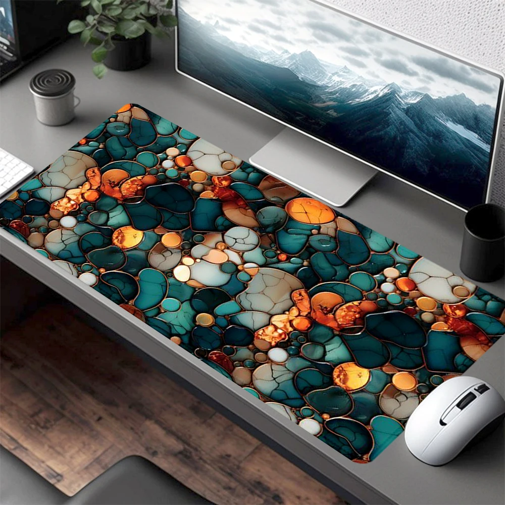 Kleur stenen muismat Art Design Grote bureauaccessoires Bureaupad Rubberen basis met gestikte rand Muismat Antislip bureaupad