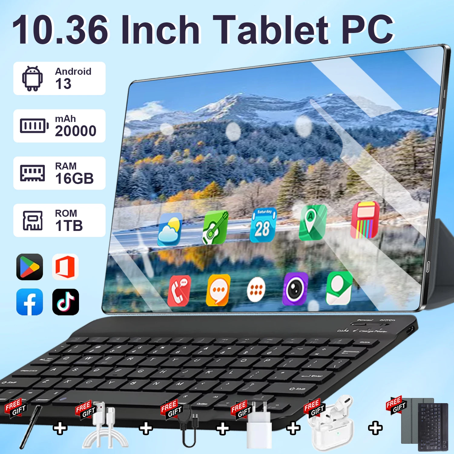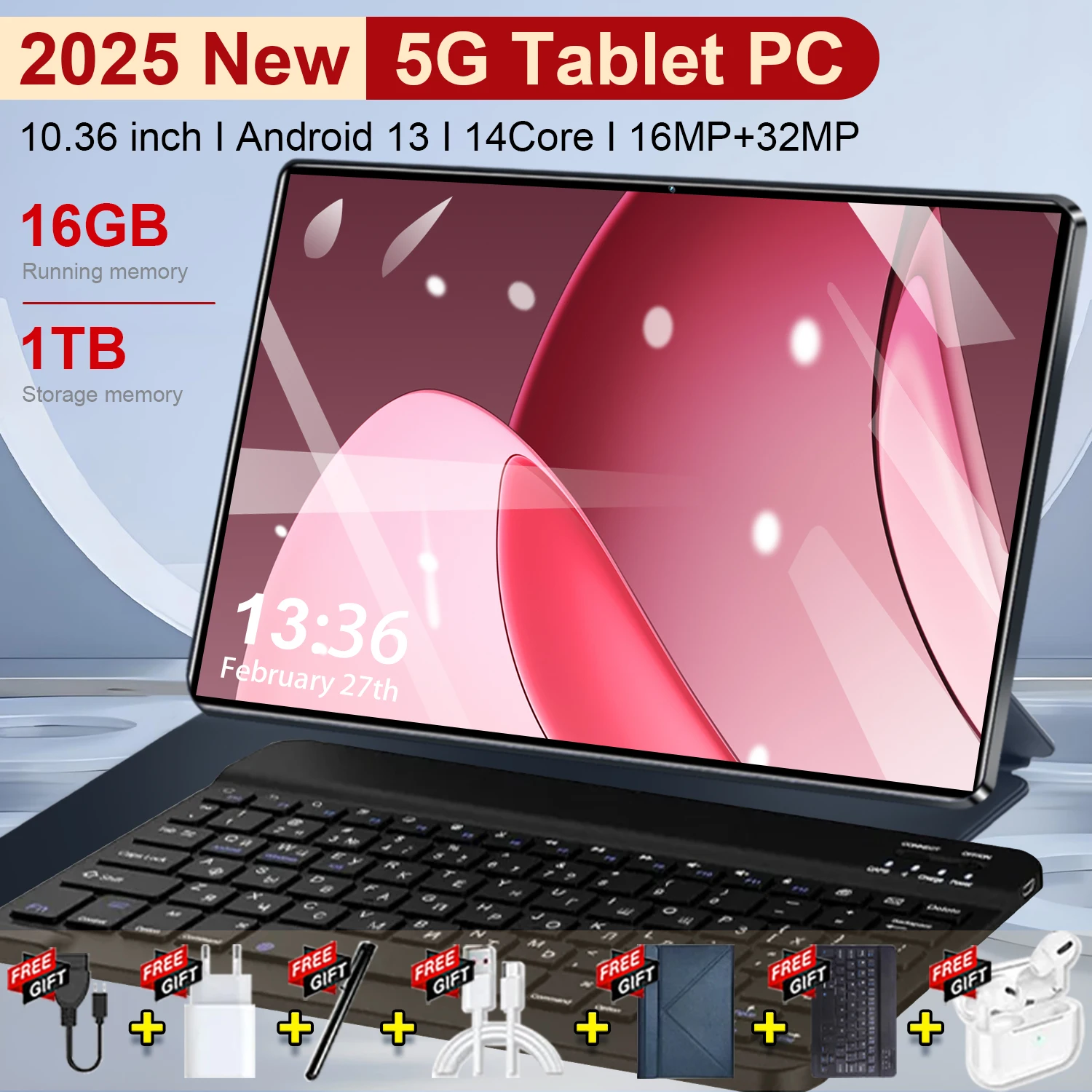 Nieuwe 5G 2026 Global 10.36 inch tablet Android 13 Pad 16GB 1TB 14-core 4K HD 5G netwerk WIFI Bluetooth WPS 20000mAh tablets