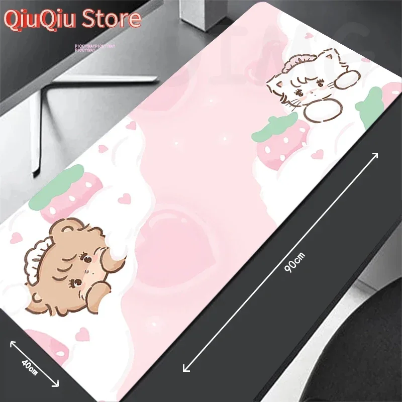 Leuke kat en konijn vergrendelbare rand muismatten grote rubberen muismat waterdichte muismatten gamer muismat bureau pads toetsenbord mat