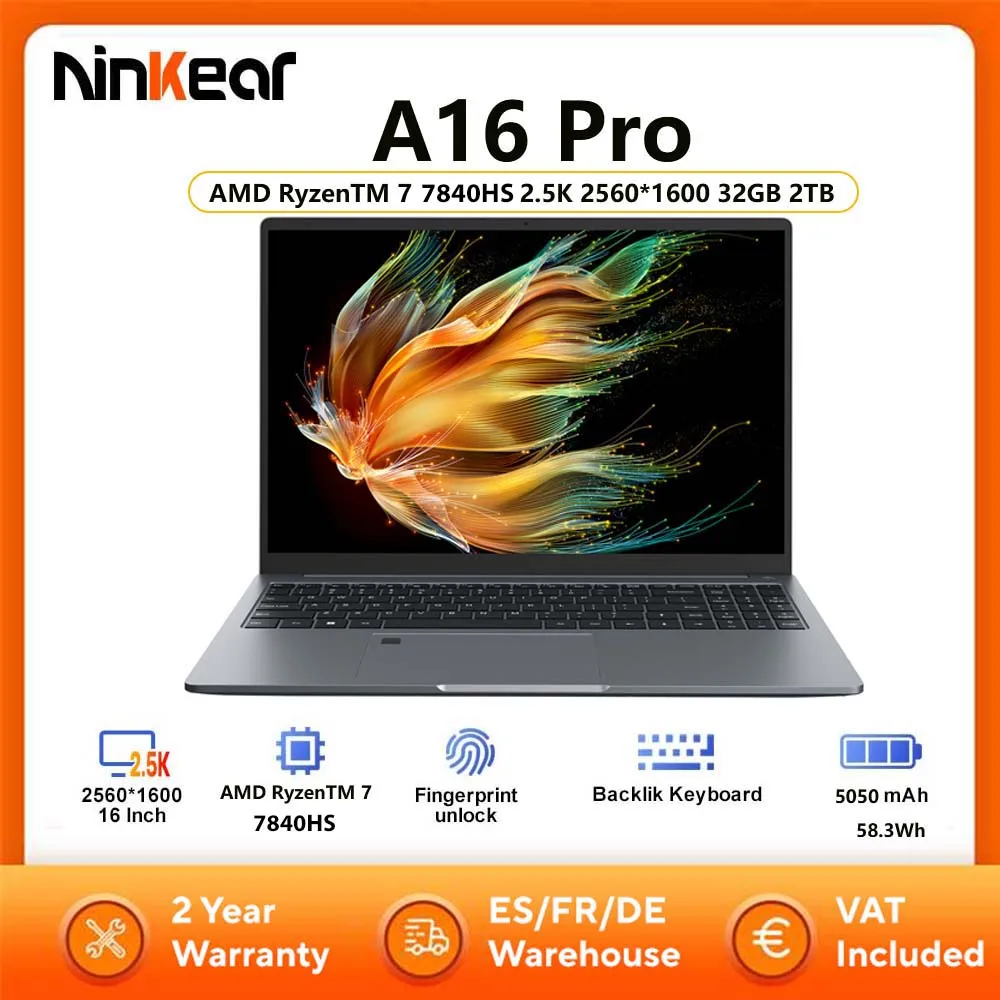 Ninkear A16 Pro-laptop EN Ryzen ™ 7-7840HS 2.5K 2560*1600 Residuatie 32GB DDR5 2TB PCIE Vingerafdruk Ontgrendelen Notebook Computer