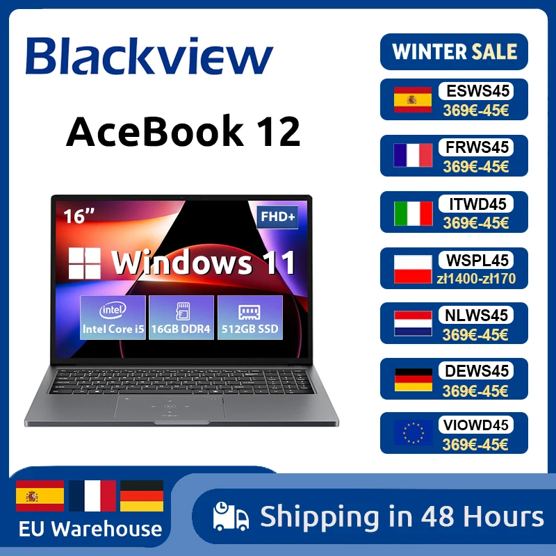 Blackview AceBook 12 Win 11 laptop 16 ''FHD IPS, Intel I5-1030NG7 notebook, 16 GB RAM 512 GB SSD, 2-in-1 vingerafdruk-aan/uit-knop