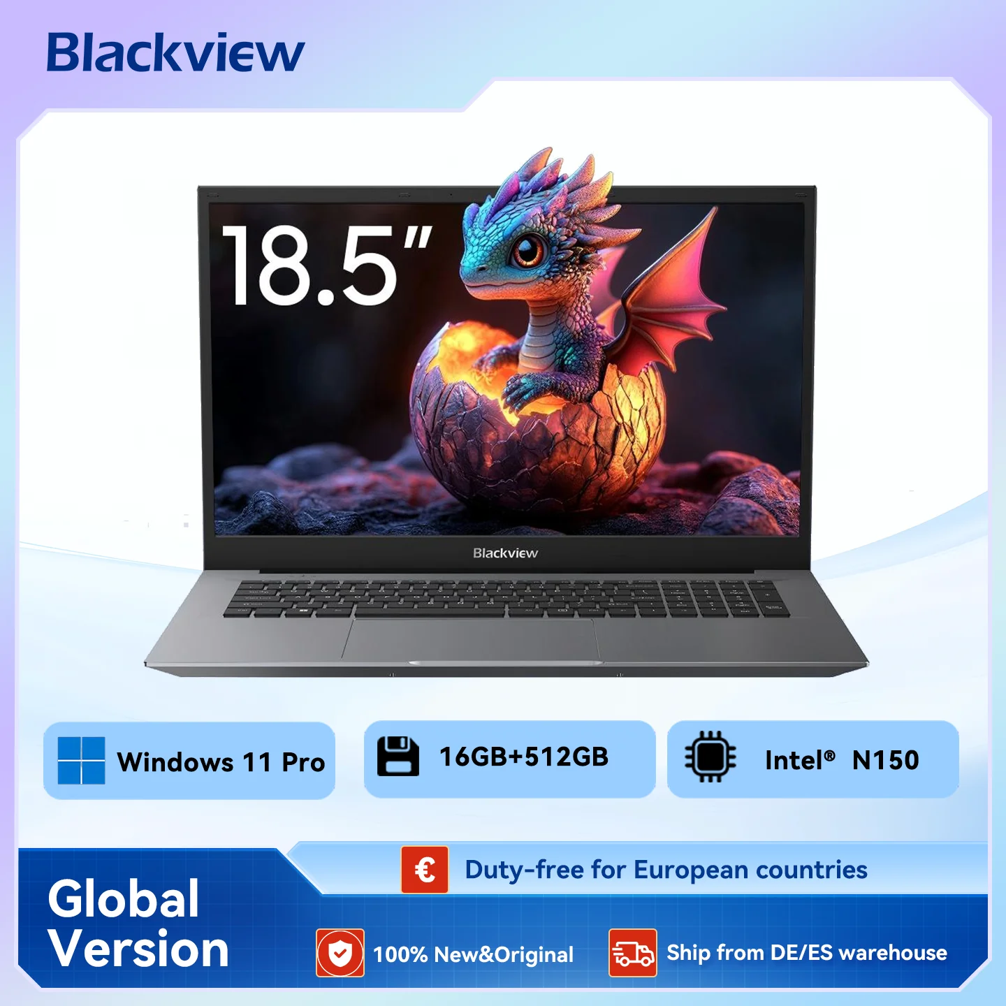 Blackview Laptop Acebook 10 18,5-inch 16GB DDR4 512GB SSD +2TB TF, 3,6GHz processor N150, Win 11 PRO, 60,8 Wh, WiFi 6&BT 5.2
