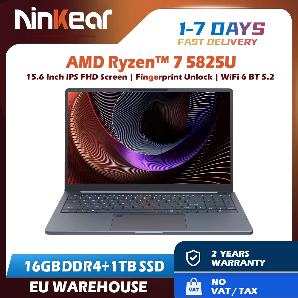 Ninkear A15 Plus 2026-gaminglaptopcomputers AMD Ryzen ™ 7 5825U 4,5 Ghz 15,6 'FHD IPS 16 GB DDR4 + 1 TB SSD verlicht toetsenbord FP ontgrendelen