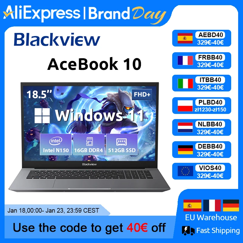 Blackview ACEBOOK 10 laptopcomputer 18,5 "FHD 8000 mAh Intel N150 Windows 11 16 GB RAM 512 GB BT5.2 WiFi 6 desktop-notebook