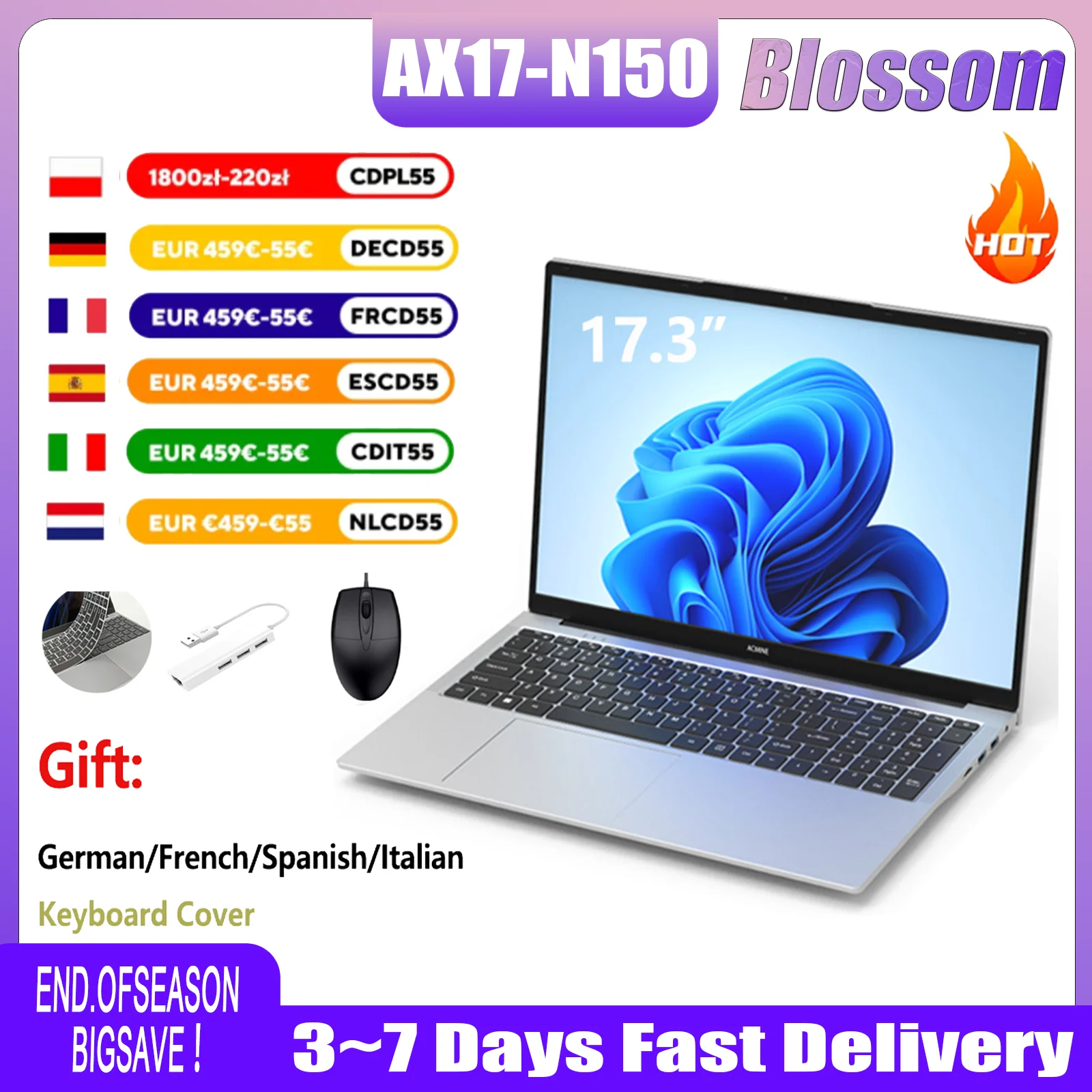 Blossom AX17-N150 Laptop Windows 11 Pro 17.3 ''Intel Atom A3950 12 GB/16 GB RAM 512 GB/1 TB SSD 1080 P Ultra Slim Notebook voor Kantoor