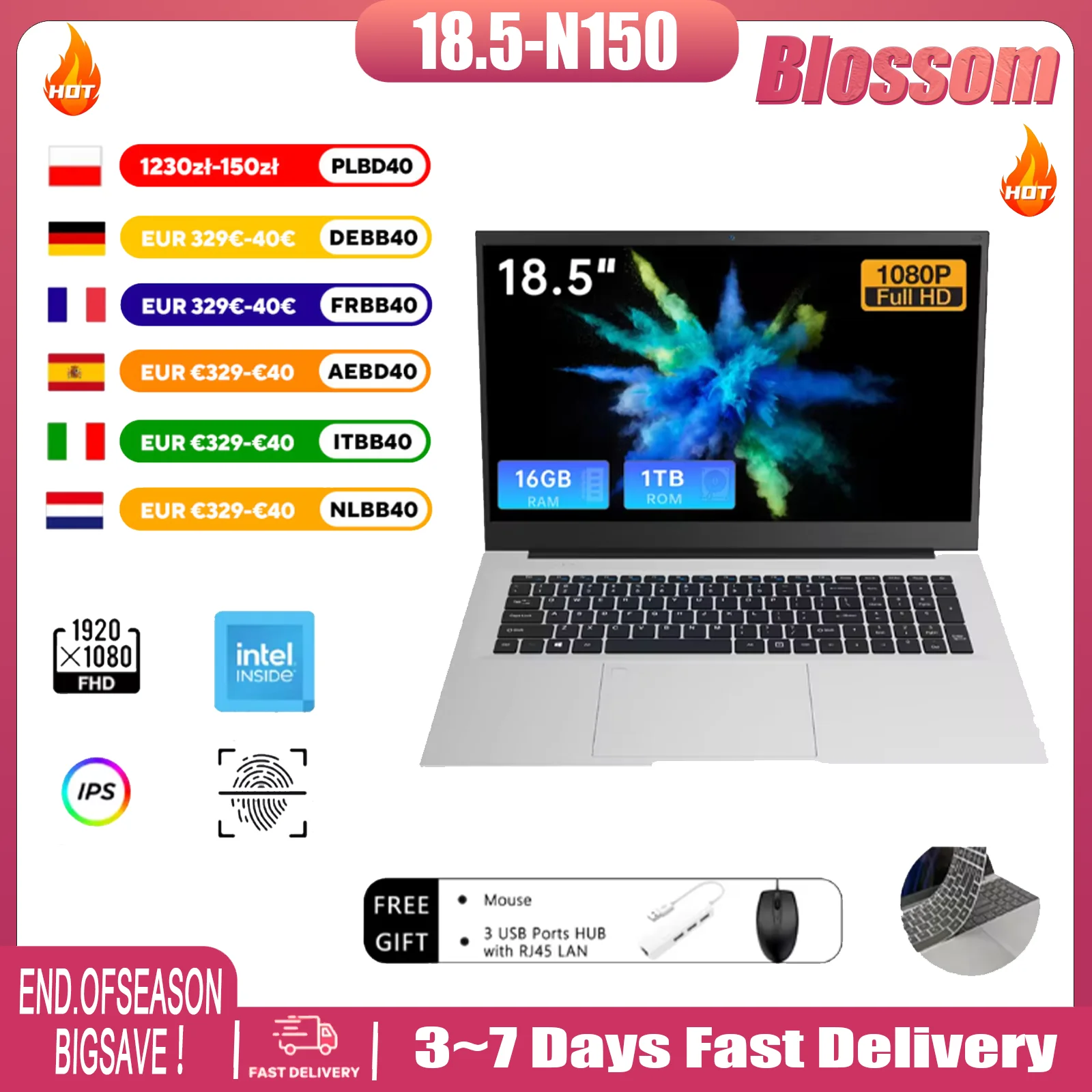 Bossom N150 "Laptop 16 GB RAM GB/1 TB SSD Intel Notebook Computer licht licht achtergrond Vingerafdruk Vingerafdruk Windows 11