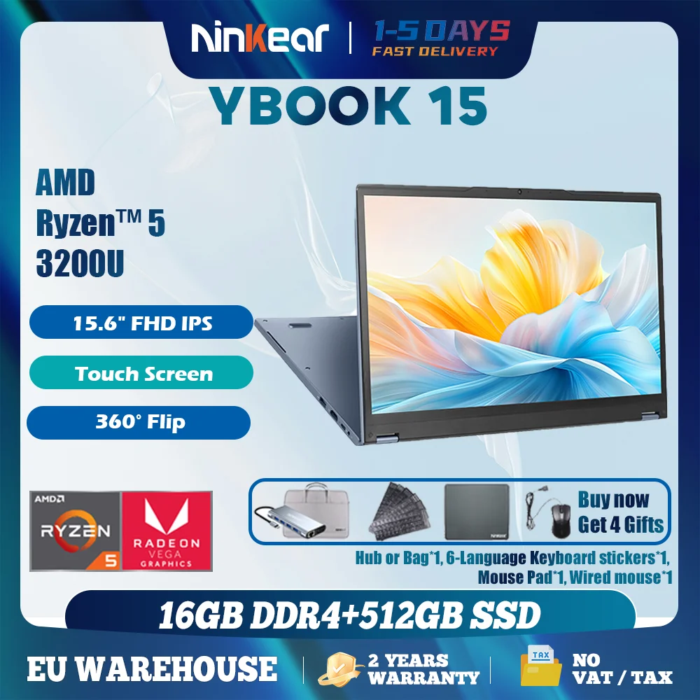 Ninkear 2-in-1 laptop YBOOK 15 Het beste kerstcadeau AMD ™ Ryzen 3 3200U 16 GB DDR4 + 512 GB SSD 15,6 inch 360 graden flip