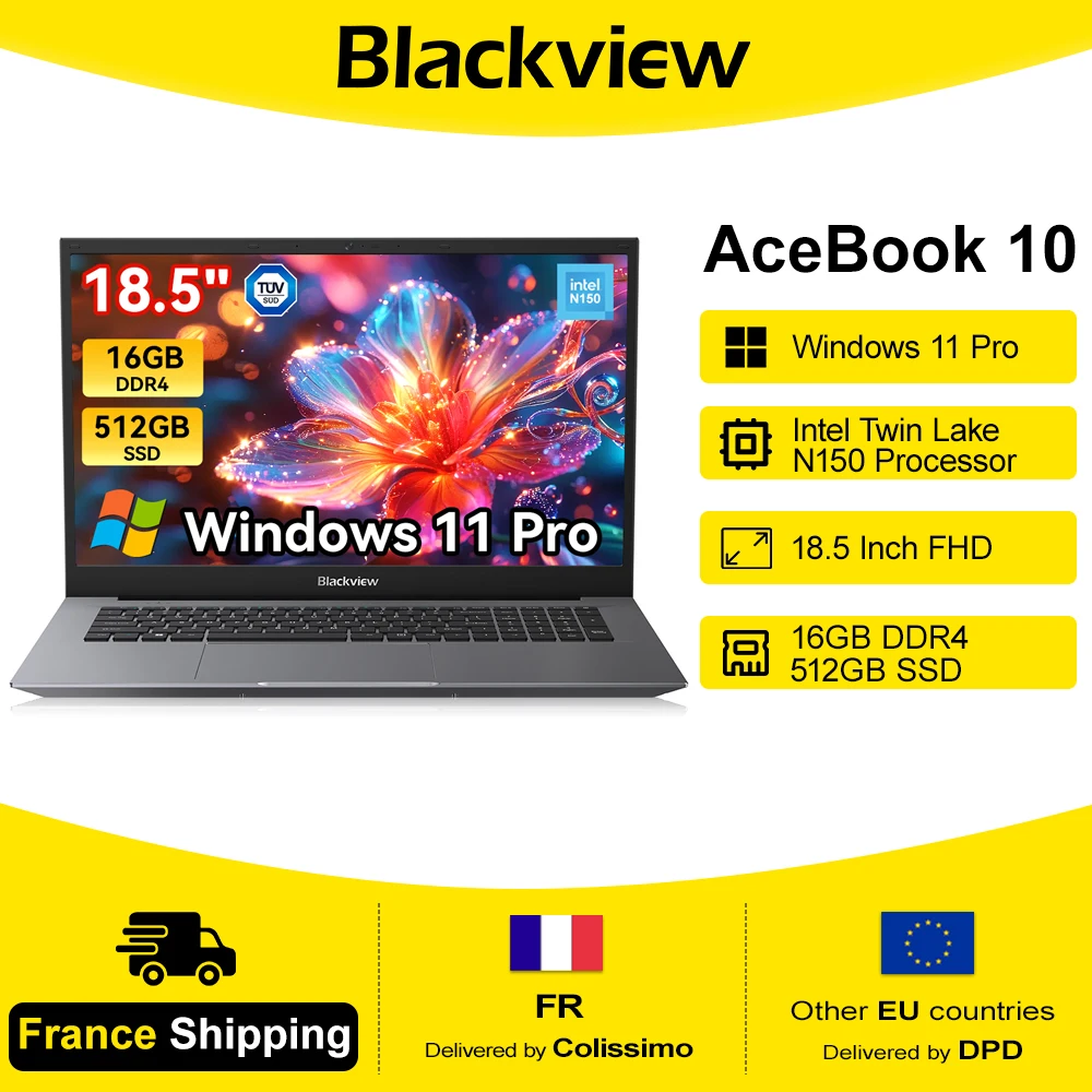 Blackview Laptop AceBook 10 16GB DDR4 512GB SSD 4-Core Intel Twin Lake N150 18.5" LCD Display Laptops Computer voor Zakelijk Student Windows 11 Pro IPS