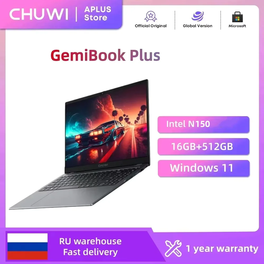 CHUWI GemiBook Plus Laptop 15,6'' 512GB SSD 16GB LPDDR5 Intel N150 (tot 3,4 GHz) Windows 11 Laptops Computer IPS FHD 1920x1080