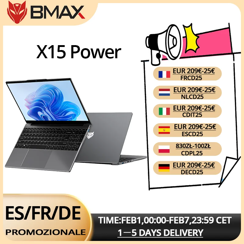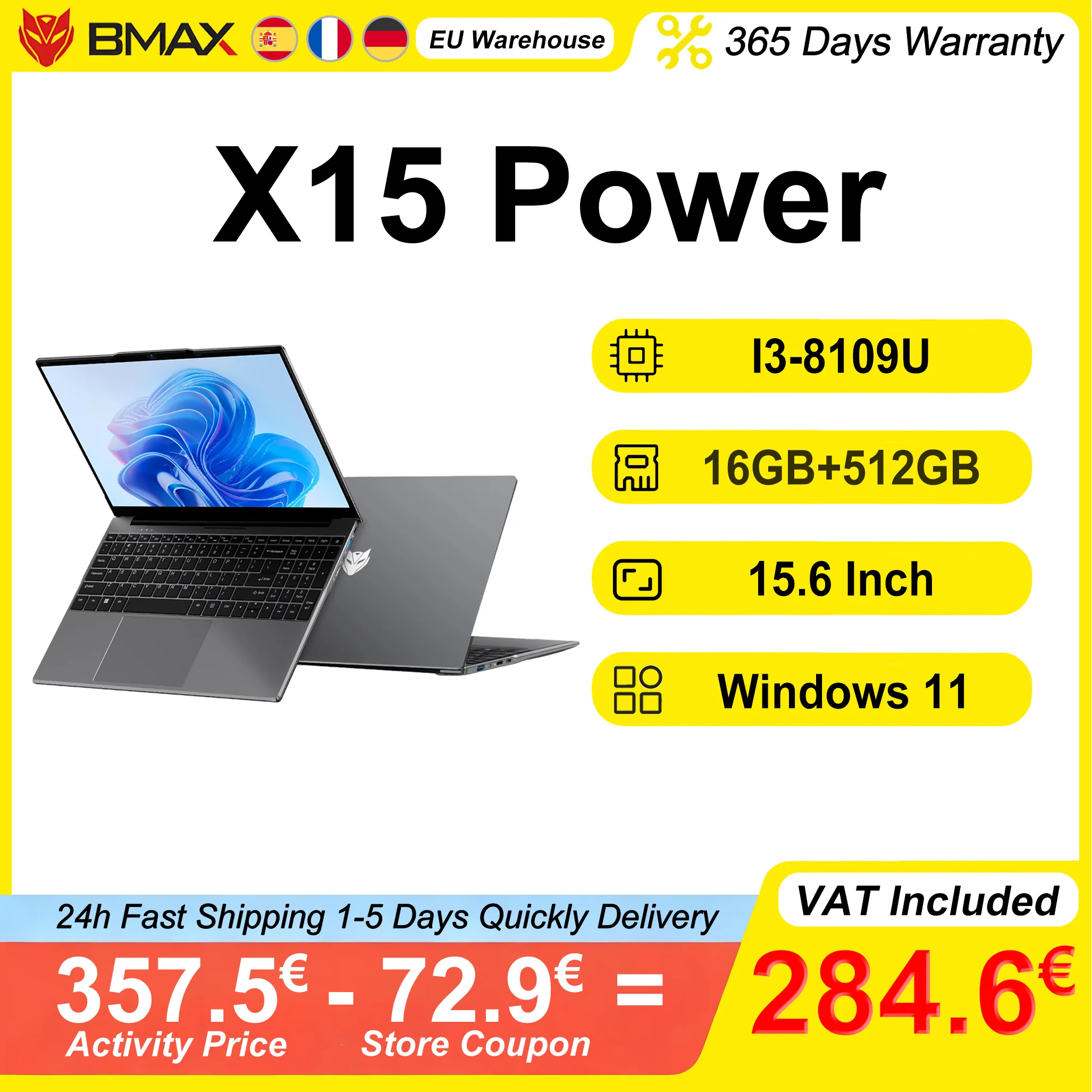 BMAX X15 Power Laptop 15,6 inch 16GB RAM 512GB SSD Intel I3-8109U Windows 11 Notebook 1920*1080 HDMI Wifi USB PC