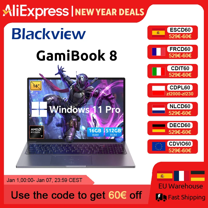 Blackview GamiBook 8 AMD R7 7735HS 16 "5000 MAH Laptop 16 GB LPDDR5 RAM 512 GB ROM Windows 11Pro BT5.2 Wifi 6 Verlicht toetsenbord