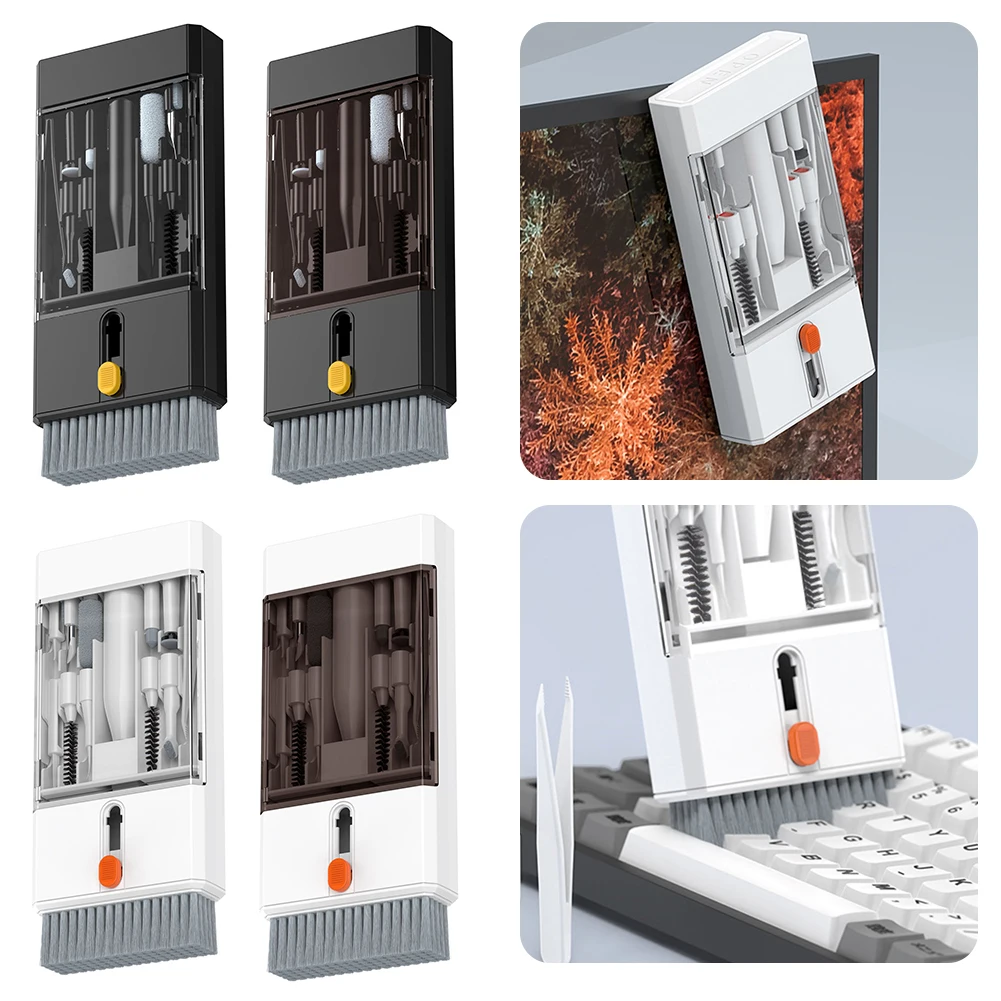 Polskussen Computerreinigingsgereedschap Zacht schuim Keycap Puller Toetsenbordreiniger Kit Ingebouwde opbergborstel Oortelefoon Schone borstelset