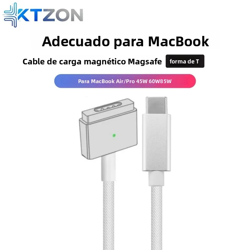 USB-C naar MagSafe 2 T-tip gevlochten oplaadkabel voor MacBook Air/Pro, snelle magnetische opladersnoer compatibel met 45W 60W 85W