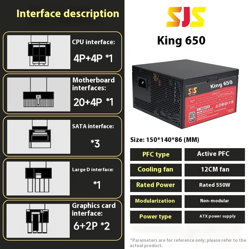 24pin 12V ATX Desktop Computer Voeding Diy Gaming SEJISHI fonte 550W PC PSU Voeding Zwart Gaming stille 120mm Fan