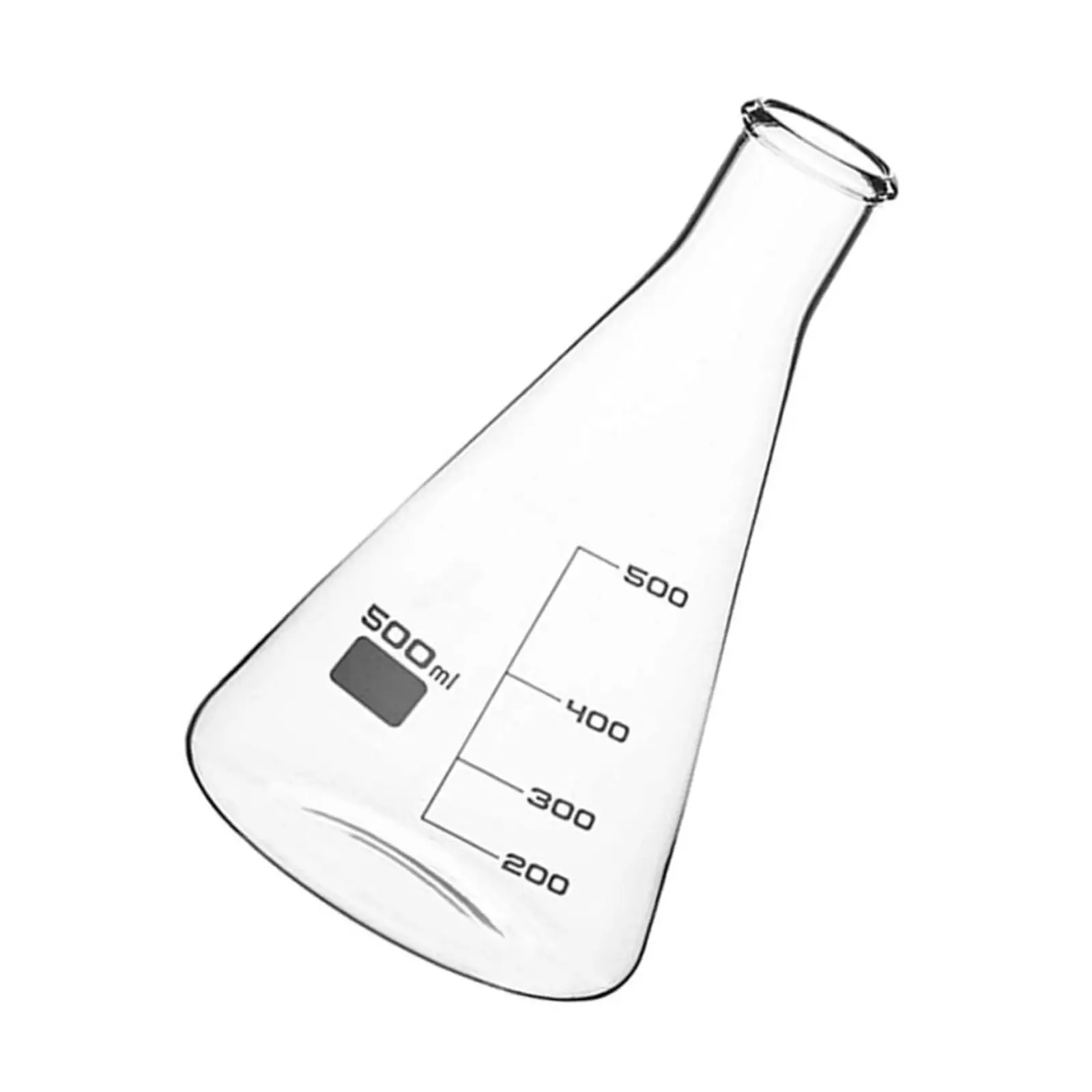 Conische kolf 500 ml glazen Erlenmeyer kolf met platte bodem laboratoriumglaskolf voor scheikunde onderzoek wetenschappelijke experimenten hittebestendig gelijkmatig