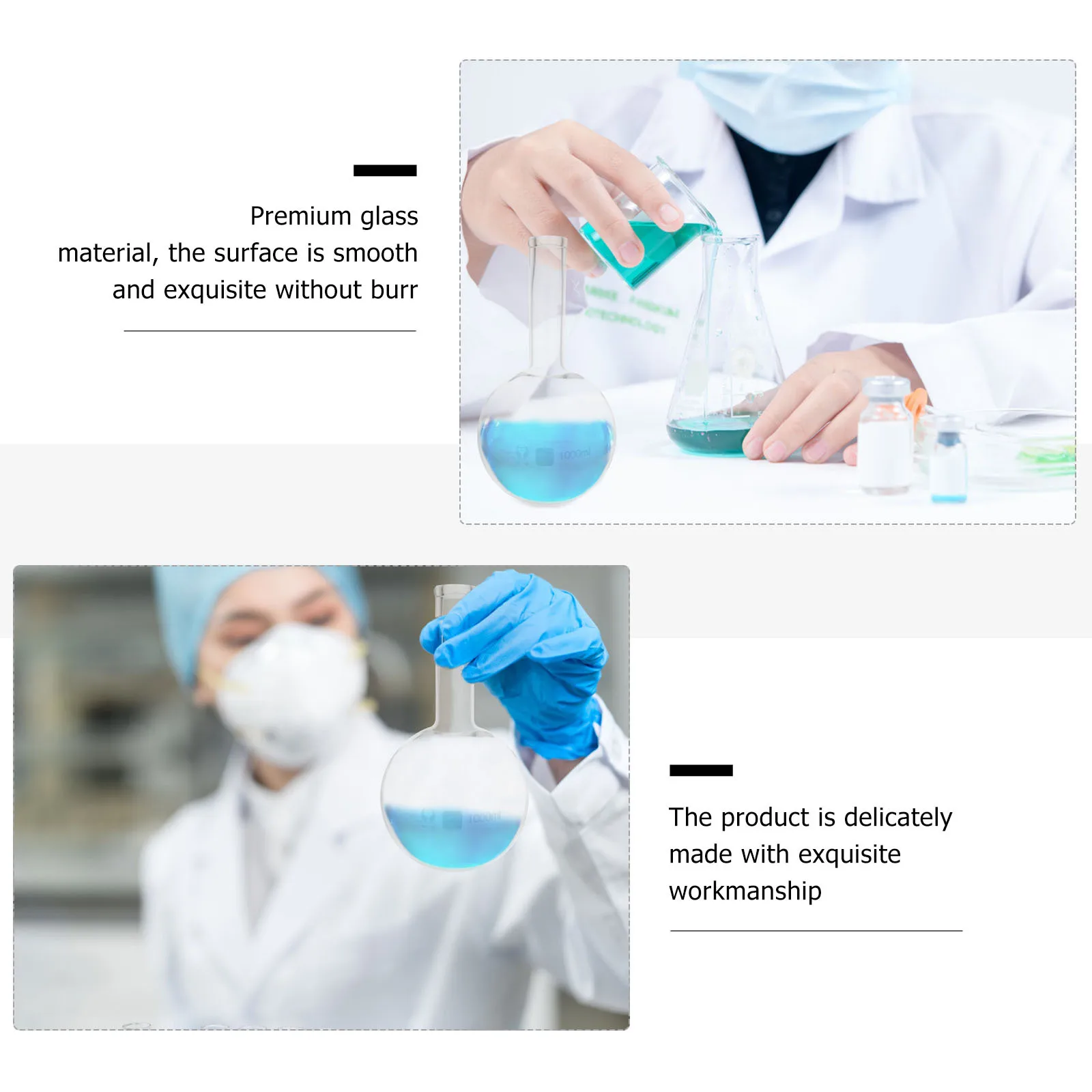 1 stuks rondbodemkolf premium glas hoge hals dunne mond platte bodem versnelde verwarming transparant wetenschappelijk laboratorium