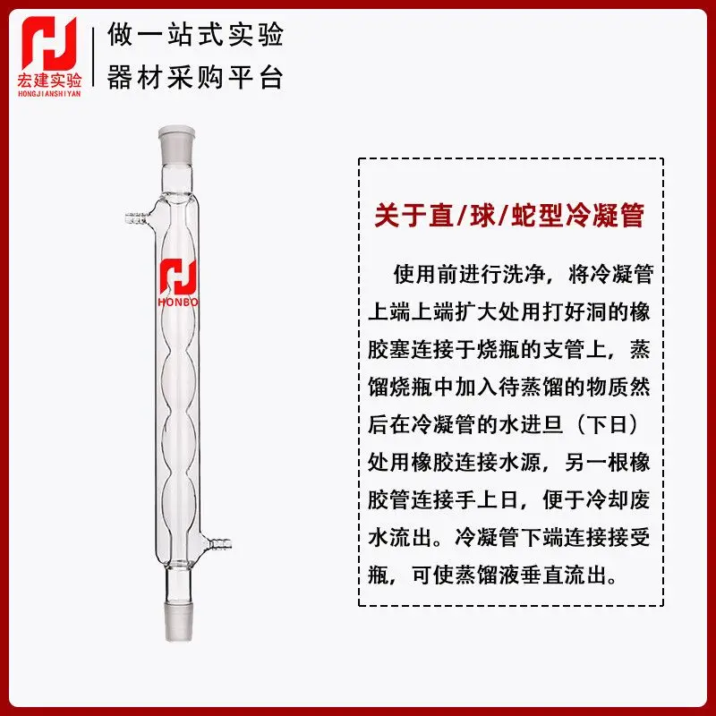 Glazen condensorbuisdestillatie, rechte sferische slangtype 200/300/400 mm luchtretourapparaat standaard poort