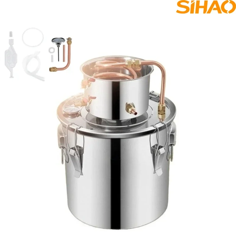 SIHAO Alcoholdistilleerder Machine 5-8 Gal Brouwen Water Wijn Essentiële Olie Brouwen Kit Roestvrij Koper met Pomp voor Thuis DIY