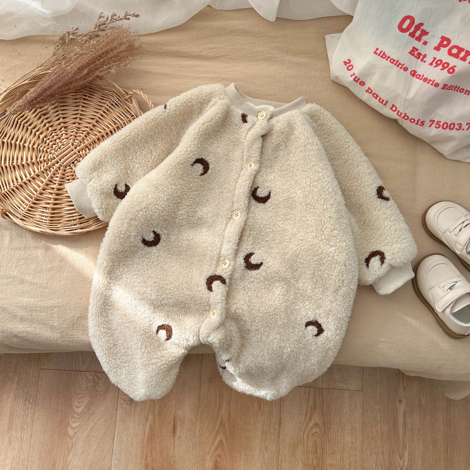 Baby Meisjes Jongens Winter Dikke Warme Fleece Leuke Print Maan Lange Mouw Rompertjes Baby Kids Overalls