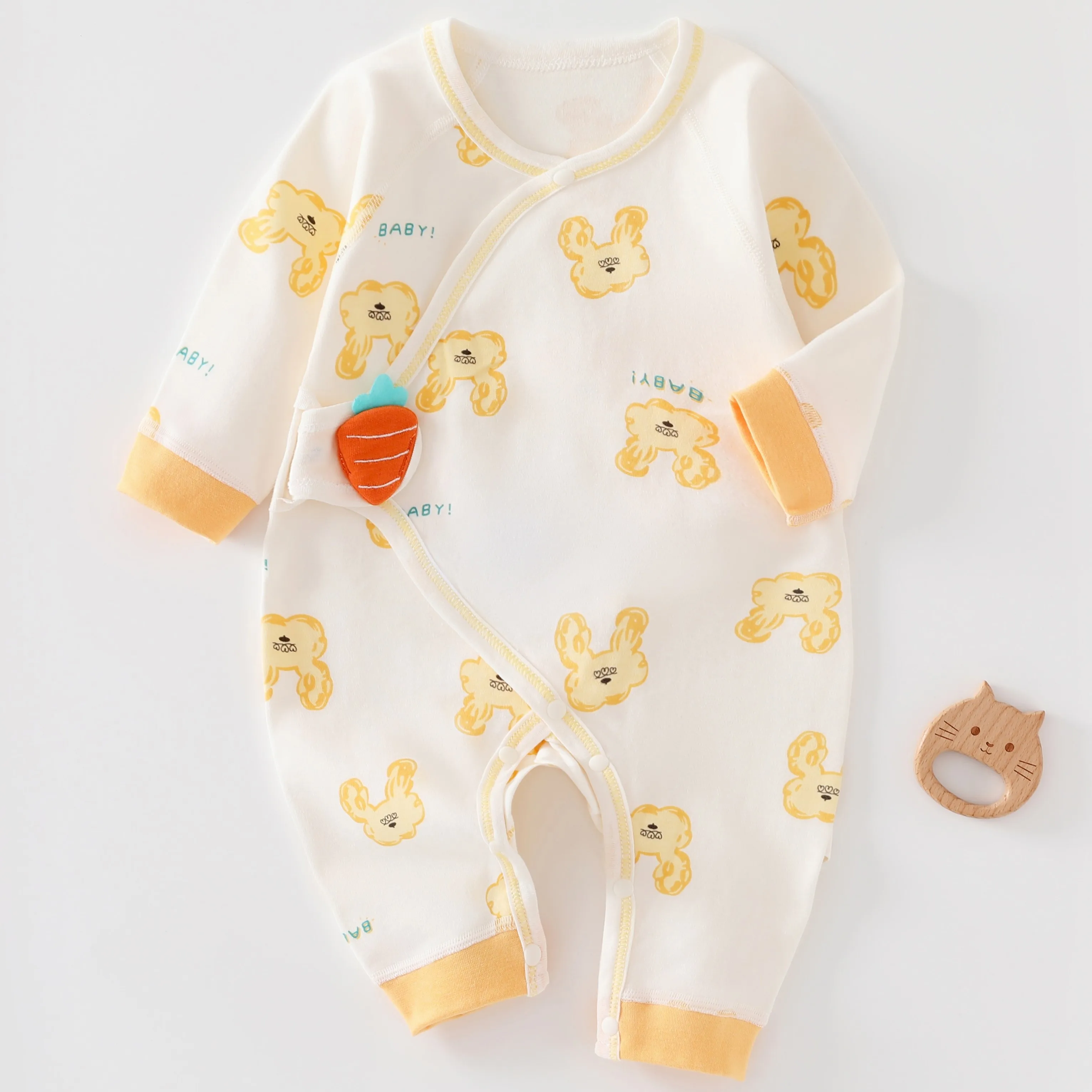 Cartoon katoenen bodysuit voor pasgeborenen, schattig patroon, geschikt voor jongens en meisjes, zachte lange mouwen, geschikt voor alle seizoenen, perfect voor buiten