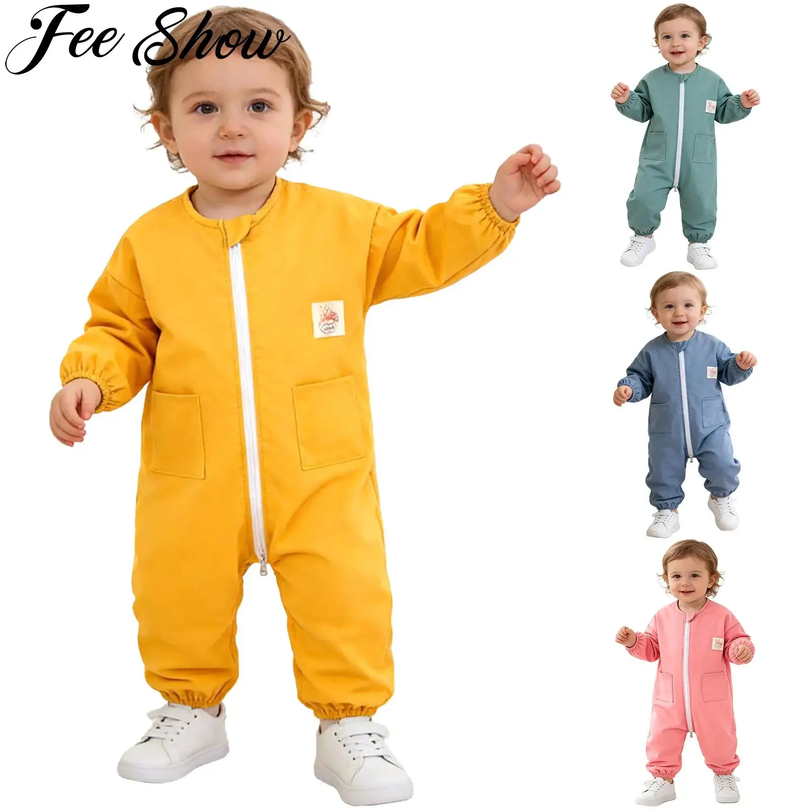 Baby Jongens Meisjes Schilderij Romper Lange mouw Rits Jumpsuit Volledige body overall met zakken Voeden Tekenen Park Picknick Playsuit