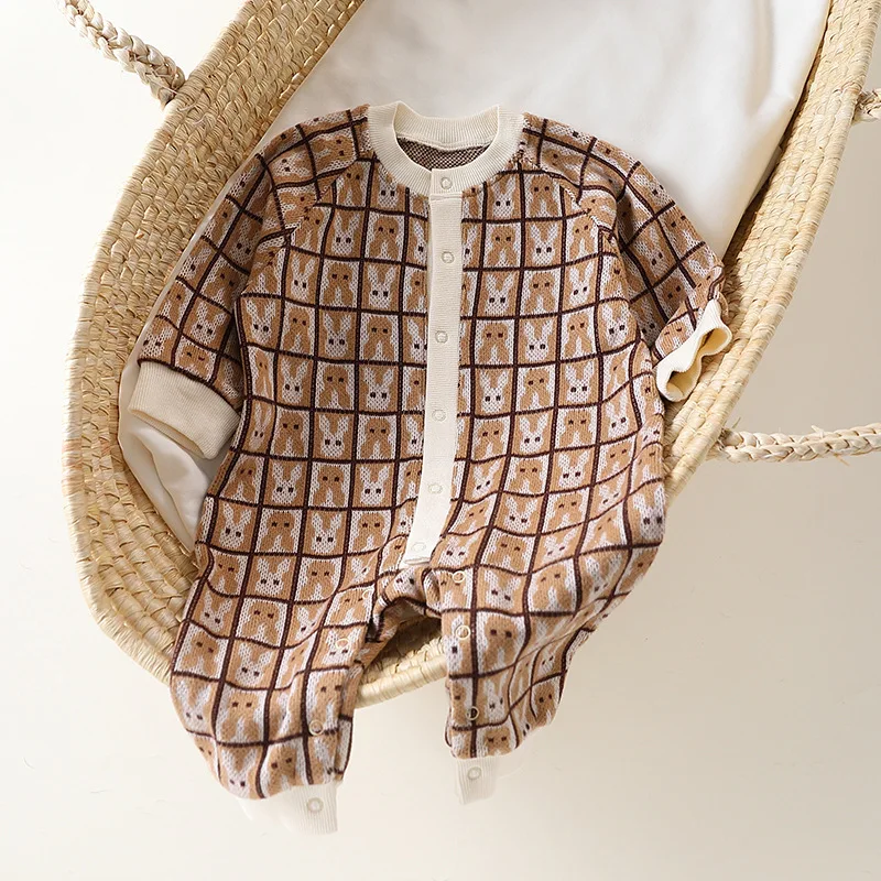 UNITIM Kids Baby Meisjes Rompertjes Lente Herfst Gebreid Konijn Jacquard Peuter Meisjes Jumpsuits Patchwork Baby Jongen Body Onesie