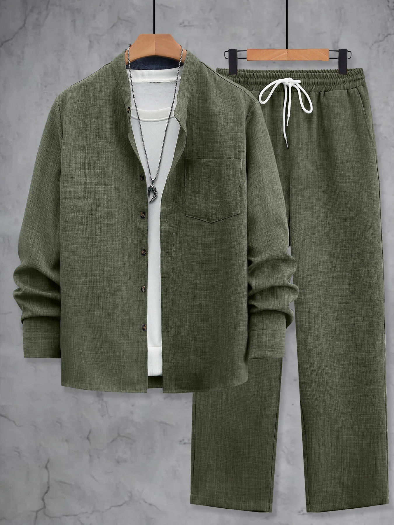 Heren 3-delige waffle gebreide trainingspak | Overhemd met geruite bies en knoopsluiting & set met elastische taillebroek en -broekje | Casual stijlvolle outfit voor