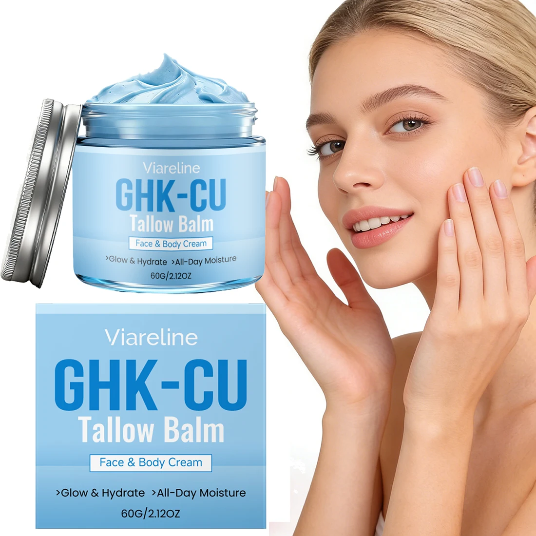 GHK-Cu Peptide Crème voor het Gezicht, Vochtinbrengende Crème met Blauw Rundvet en Koperpeptiden, Zacht en Veilig voor Gezicht, Handen en Lichaam, Diepgaand Voedend