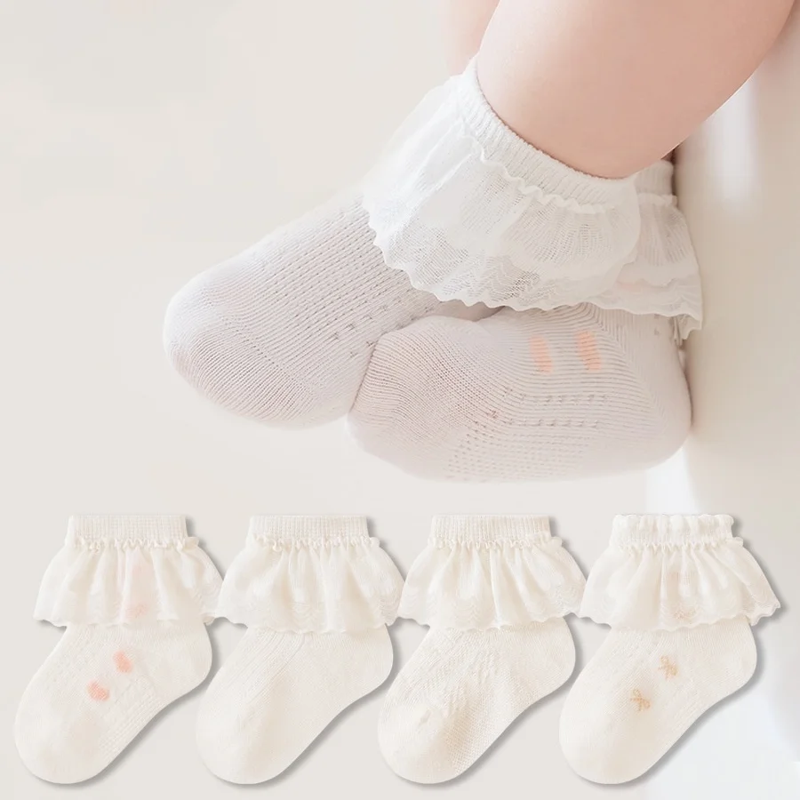 Lente Zomer Pasgeboren Sokken Voor Baby Prinses Kinderen Dunne Mesh Peuter Meisjes Kanten Ruche Sokken Baby Zachte Baby Sokken 0-5Yrs
