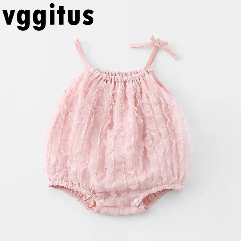 Baby Meisje 2025 Nieuwe Zomer Bodysuit Zoete Prinses en Peuter Strap Sling Mouwloze Bretels Effen Kleur Jumpsuit H5363