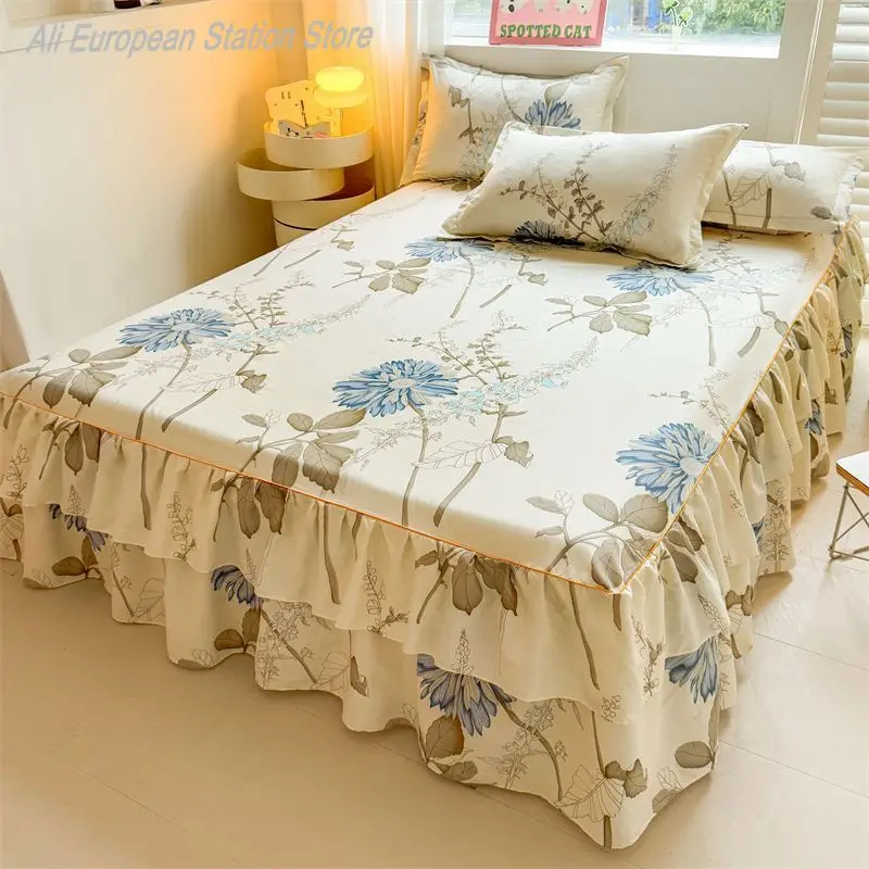 Bedrok met 2 stuks kussenslopen huishoudtextiel katoenen laken met rok voor kingsize bedspreads slaapkamer zachte bedovertrek