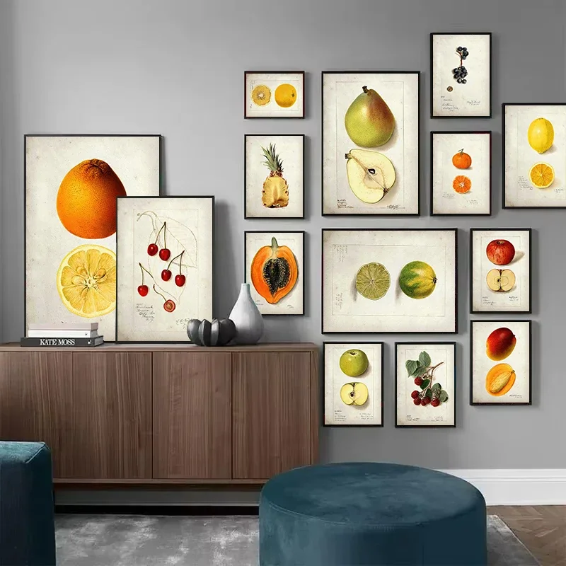 Fruit Oranje Mangosteen Canvas Schilderij Poster Fruit Doorsnede Perzik Avocado Ananas Muur Kunst Decoratie Geschikt Keuken
