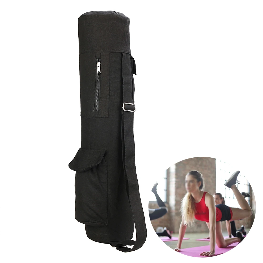 Opbergtas voor yogamatten met verstelbare schouderriem Meerdere vakken voor het opbergen van fles, telefoon, sleutel en handdoeken Canvasmateriaal