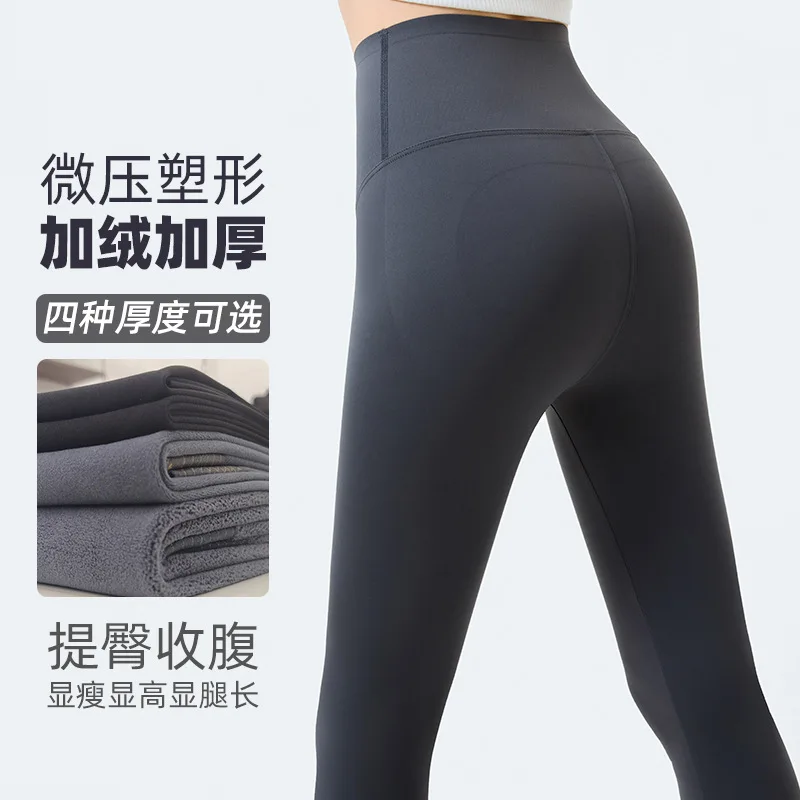 Herfst en winter dikke haaienbroek met fleece en leggings voor damesbovenkleding. Winterwarme negen inch strakke yogabroek met