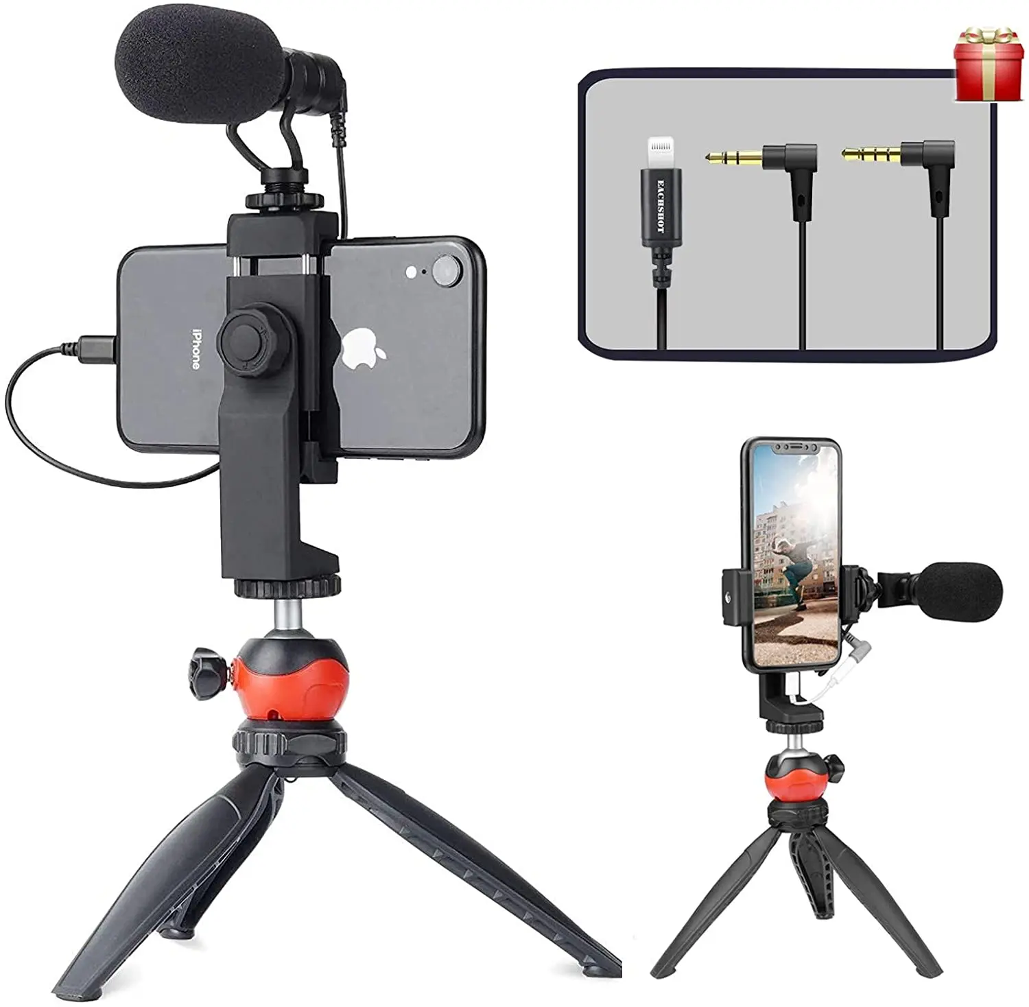 EACHSHOT Microfoon Vlogger Kit Led Video Light Mini Statief shotgun Microfoon Telefoonclip voor Iphone 12-smartphone